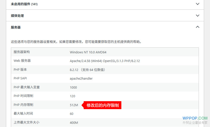 memory_limit = 256M验证 PHP 内存限制是否已增加